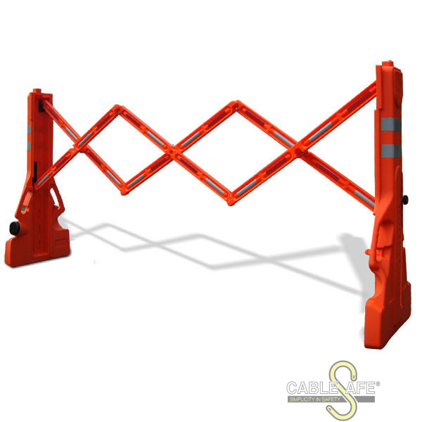 The CableSafe MultiGate Scissor Barrier is a lightweight yet robust expandable plastic barrier, designed to quickly secure hazardous or restricted areas. Manufactured from durable plastic and equipped with red and white Class 2 reflective markings, this foldable barrier heavy duty guarantees maximum visibility in any light condition. Its plastic expandable folding, scissor-style design allows for rapid deployment and easy transport, with a built-in handle for added convenience. The stable support bases can be filled with water or sand for enhanced sturdiness, making the MultiGate ideal for construction sites, maintenance activities, portable crowd control, and any location where safety barriers and access control are essential.